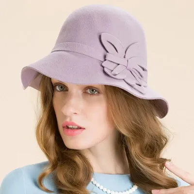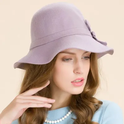 Women Solid Color Winter Hat 100% Wool Cloche Bucket Bowknot Fedora Hats