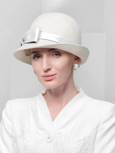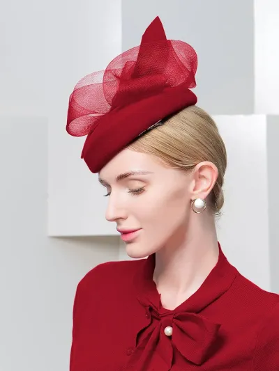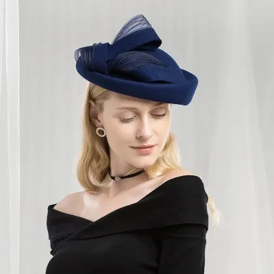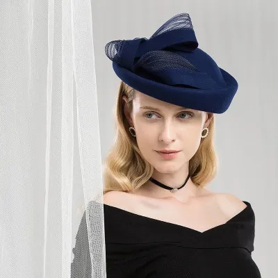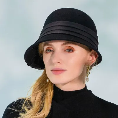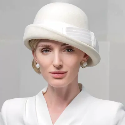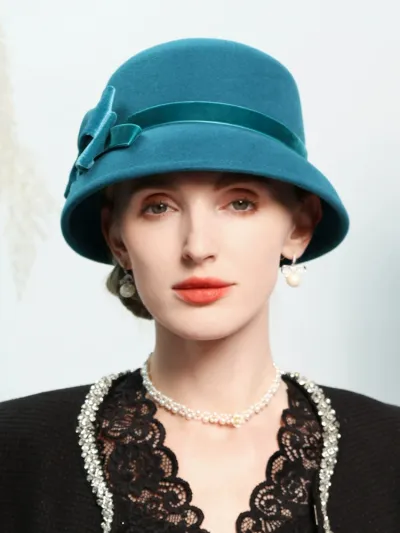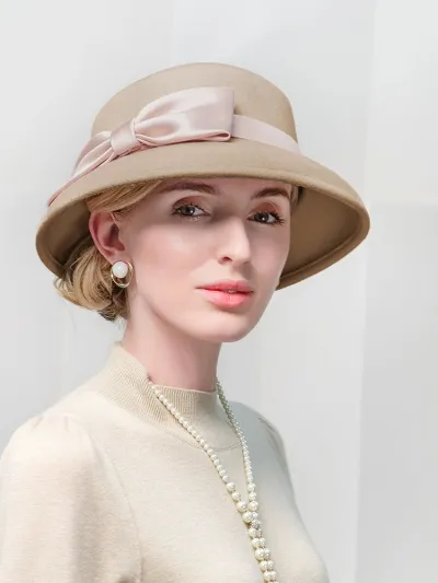 Elegant Vintage Church Hats 100% Wool Hats with Satin Bow Kentucky Derby Cloche Hats