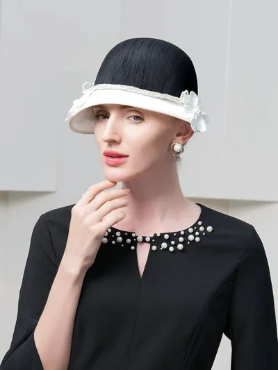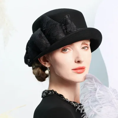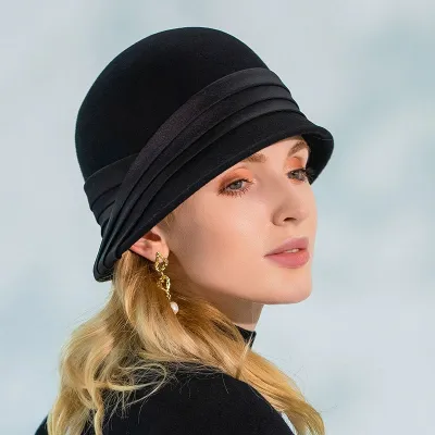 100% Wool Bowler Cloche Hat Wedding Church Hat Evening Party Elegant Fedora Hat
