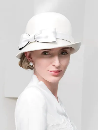 100% Wool Bowler / Cloche Hat Wedding Tea Party Elegant Wedding with Bowknot Fedora Hats