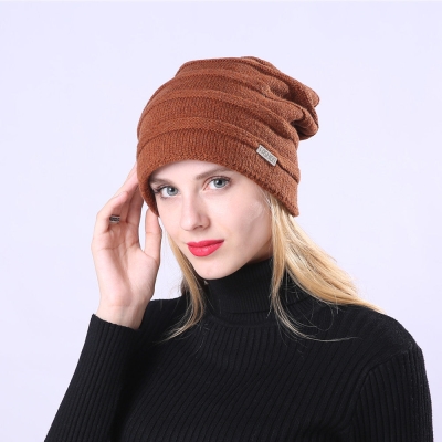 Women Solid Color Striped Knitted Hat