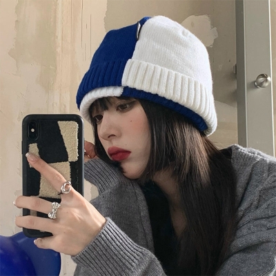 Autumn and Winter Contrasting Knitted Hat