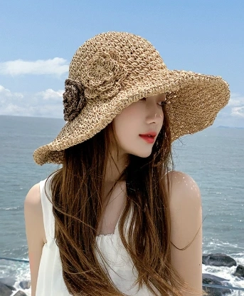 Seaside Fresh Folding Sunshade Straw Hat